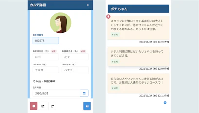 ペットホテルなら、「特定のフードしか食べられない」「過去に特定の病気を経験」など、細かい情報も記録可能。トリミングサロンでは、「前回の施術内容」「好きなスタイルの傾向」「施術中に気をつけないといけない点」などをメモとして残せば、顧客満足度の高いサービスを実現できます。